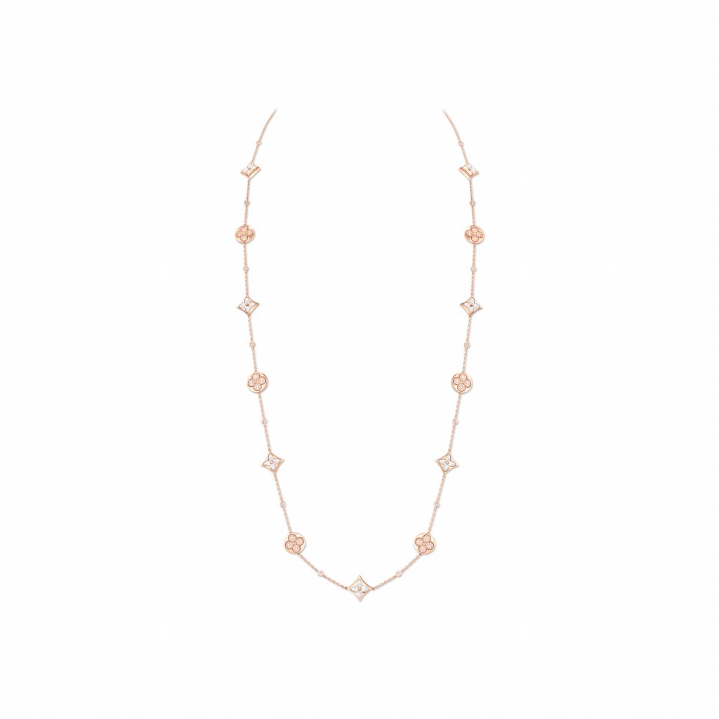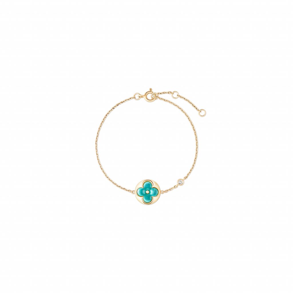 Mit der aktuellen Lancierung erweitert Louis Vuitton die Kollektion um 27 neue Kreationen – Schmuckstücke, die das Monogramm in verschiedensten Größen, Materialien und Farben zelebrieren. Ob als zartes Armband mit Amazonit-Blüte oder als roségoldene Sautoir-Kette mit Perlmutt-Intarsien: Die Designs verbinden hohe Juwelierskunst mit der Ästhetik modularer Kombinierbarkeit. Die verwendeten Steine – von Onyx über Karneol bis Malachit – setzen auf natürliche Tiefe statt plakative Brillanz und stehen im Kontrast zum hochpolierten Gold.