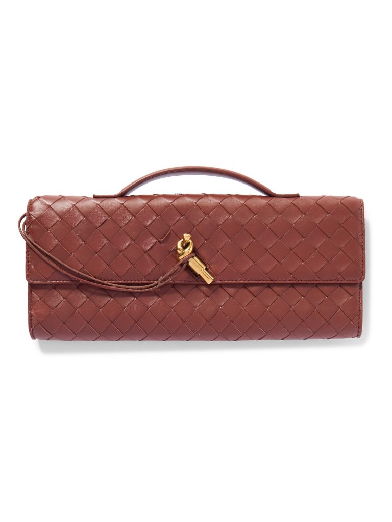 BOTTEGA VENETA LONG ANDIAMO CLUTCH IN ZIEGELROT (VIA NET-A-PORTER)